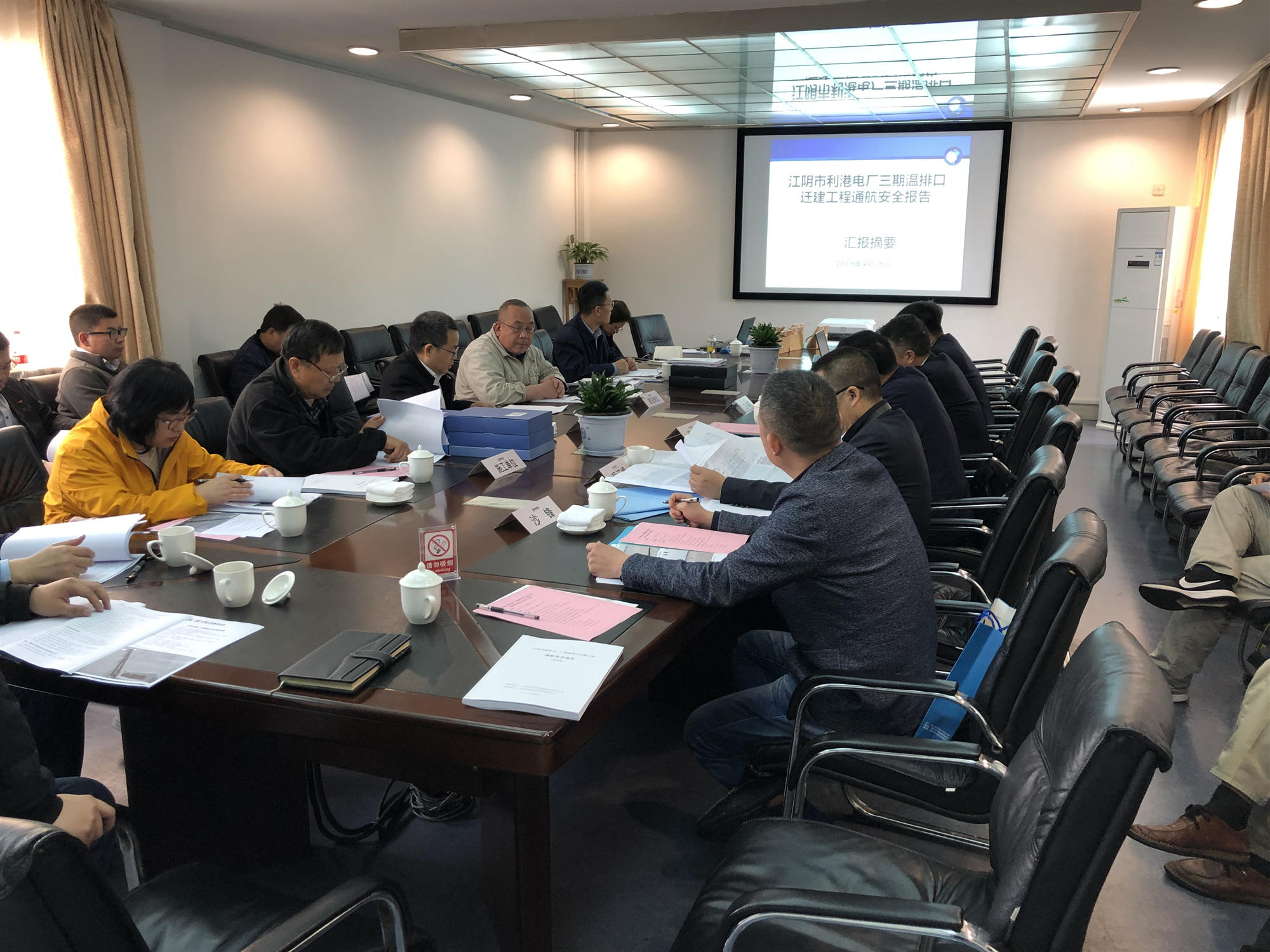 2019年4月28日,江陰海事局在江陰組織召開了江陰市利港電廠三期溫排口遷建工程通航核查會(huì)議。參加會(huì)議的有江陰海事局、江陰利港發(fā)電股份有限公司(業(yè)主單位)、中設(shè)設(shè)計(jì)集團(tuán)股份有限公司(設(shè)計(jì)單位)、中海工程建設(shè)總局有限公司(施工單位)、上海海科工程咨詢有限公司(監(jiān)理單位)、江蘇中信安全環(huán)境科技有限公司(報(bào)告編制單位)代表以及特邀專家。